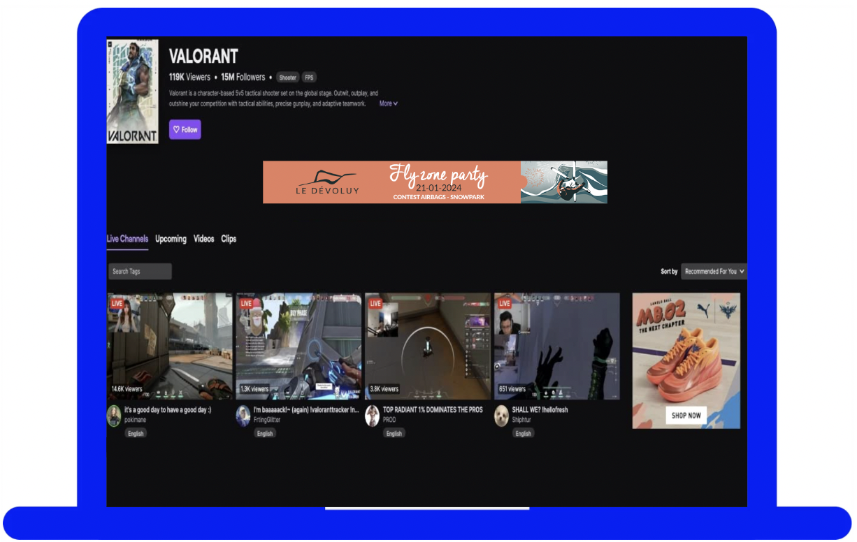 | Vidéo Premium | 1920x1080 | MP4 | Pré-roll ou Mid-roll 30 à 60 secs, supplément payant pour video de 60 secs Fréquences d'images : 24 à 30 images/secondes |
